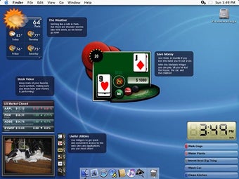Avec plus de 4000 widgets en stock, l'offre de Yahoo! est plutôt intéressante, d'autant plus qu'il n'est pas nécessaire de s'enregistrer pour pouvoir en profiter. Graphiquement, c'est très abouti et les problèmes de consommation excessive de mémoire sont réglés. Manque de chance, l'intégration n'est pas au point, et vous ne pouvez pas avoir Dashboard et Yahoo! sous la même interface, les deux cohabiteront dans la plus grande indifférence.